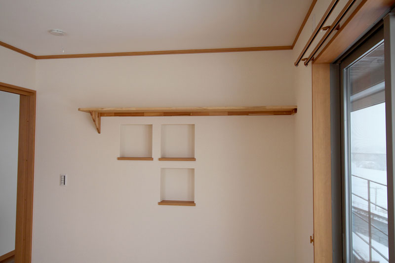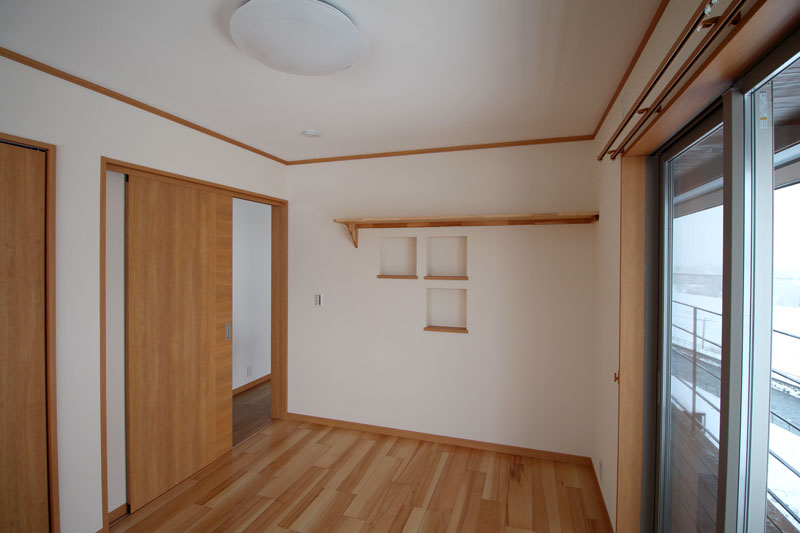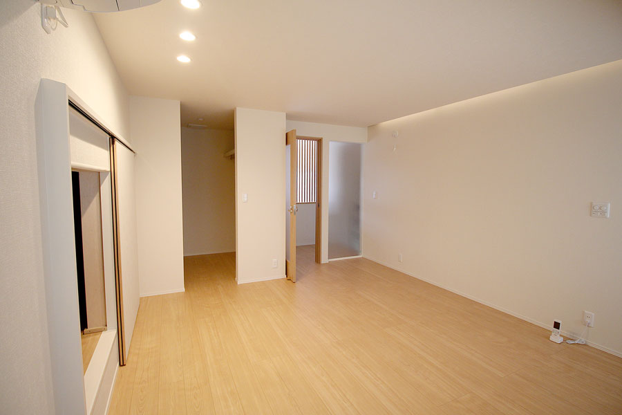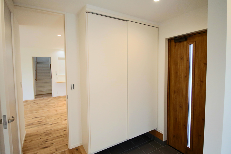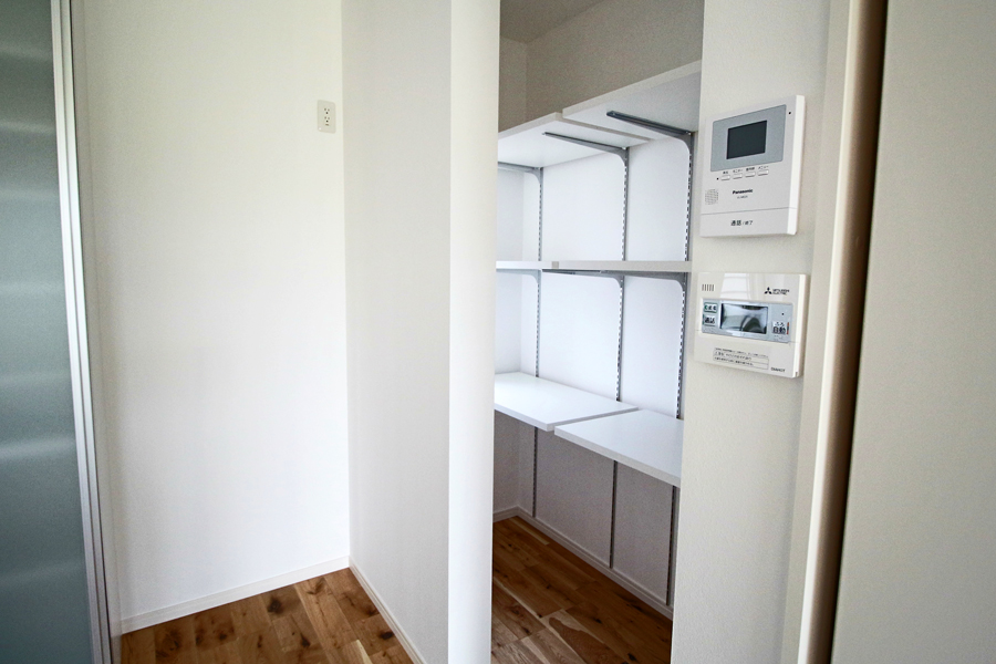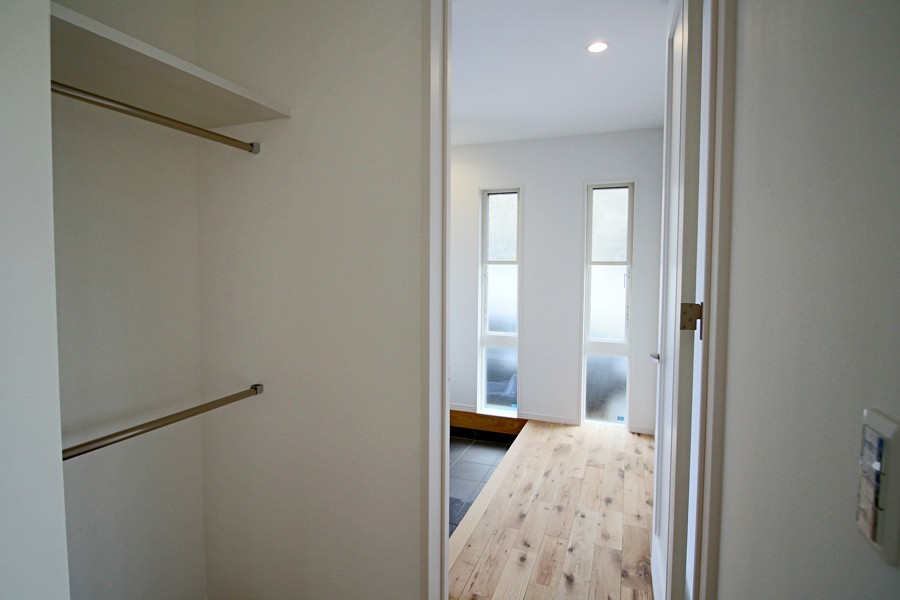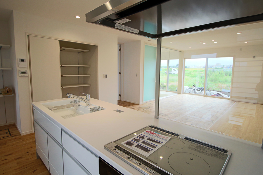 白を基調として、床は無垢のフローリングにしました。奥様は収納や棚を気になさっていたため、間取りも希望通りになるように設計しました。