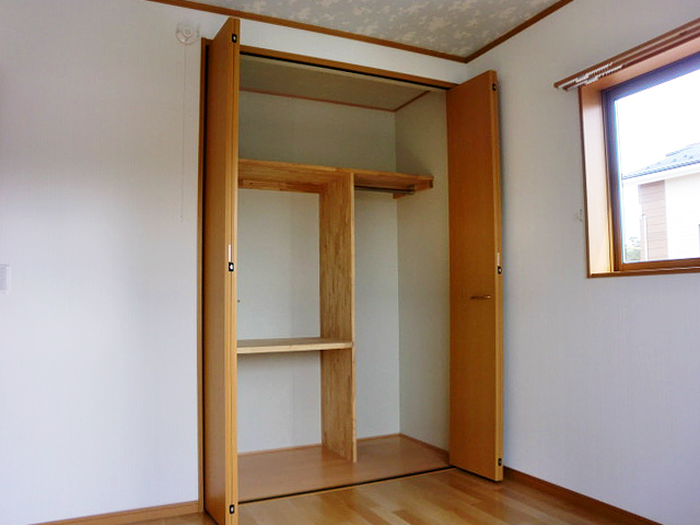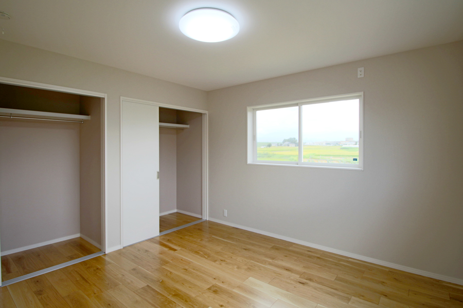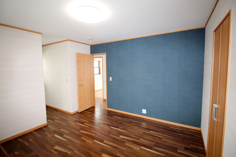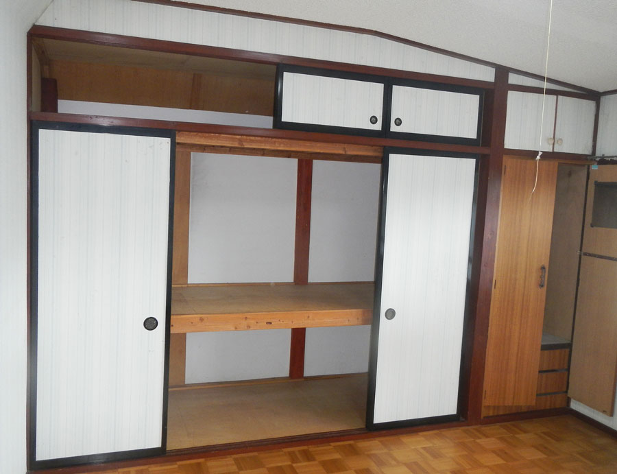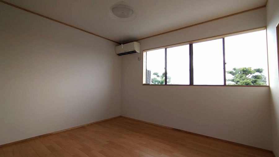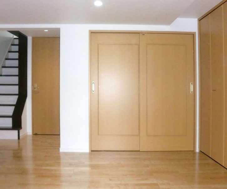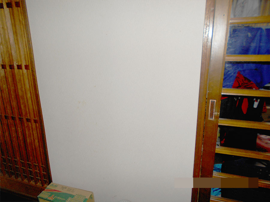 以前畳を床に替えた部屋を、今回は壁や天井をクロスに替えました。 収納部分が3つに分かれていて使いにくかったみたいですが、1つの大きなクローゼットに替えました。 すっきりした印象です。