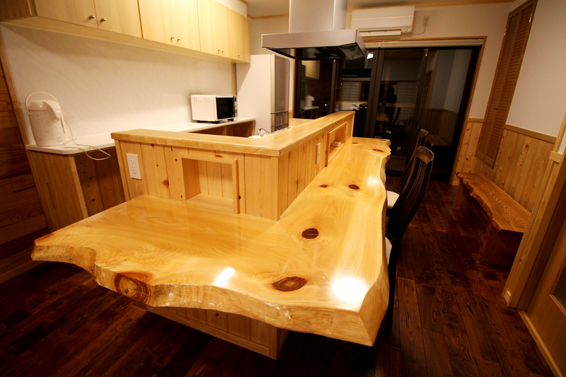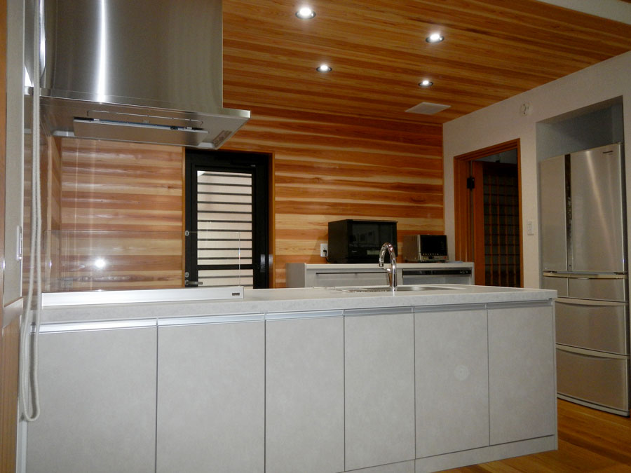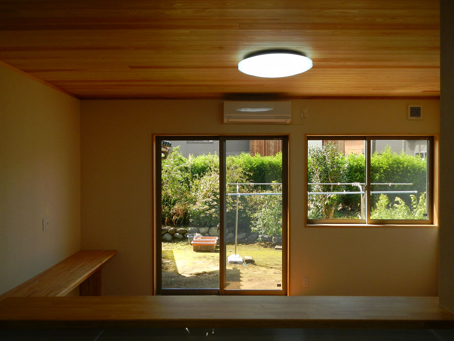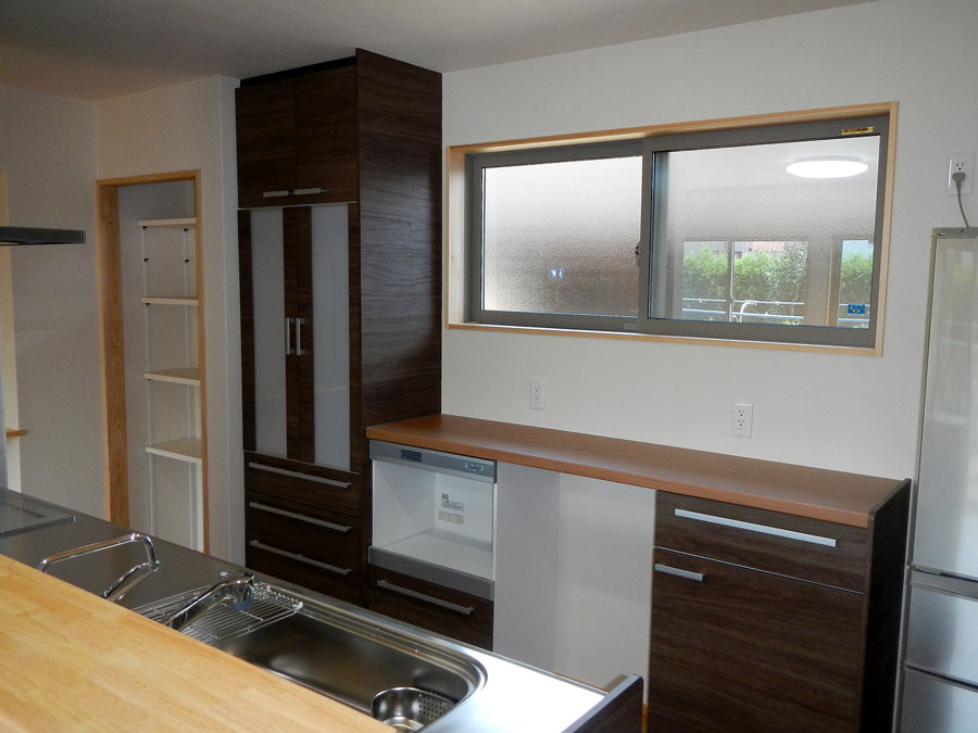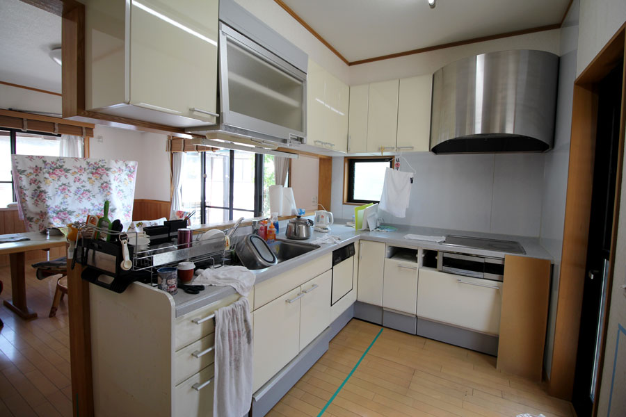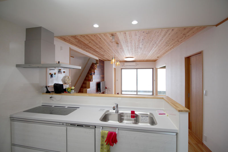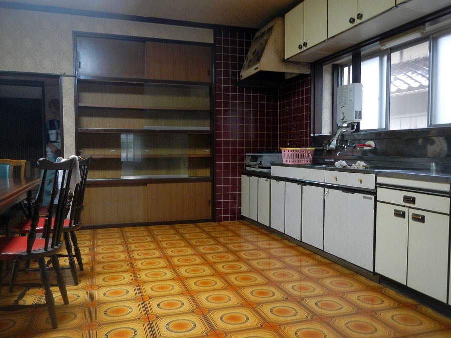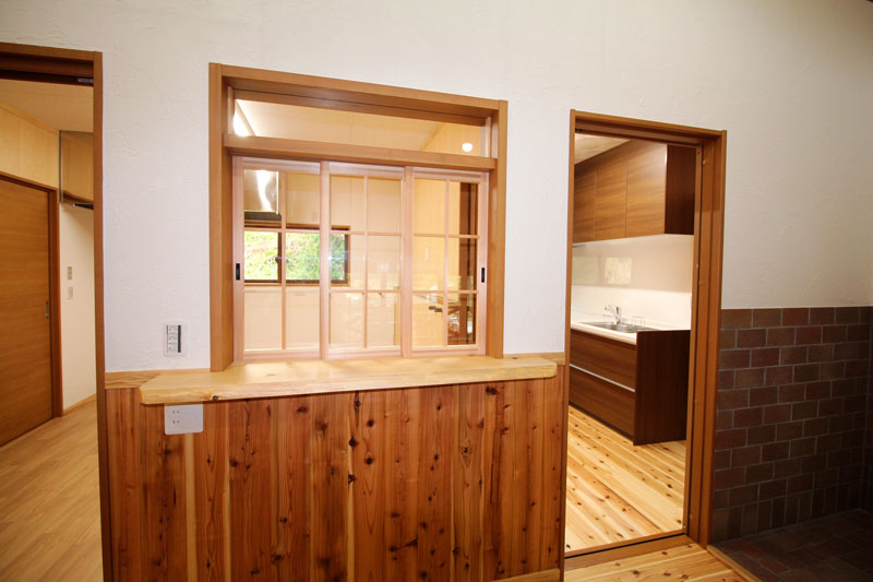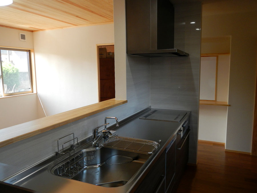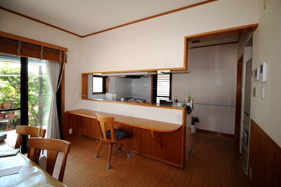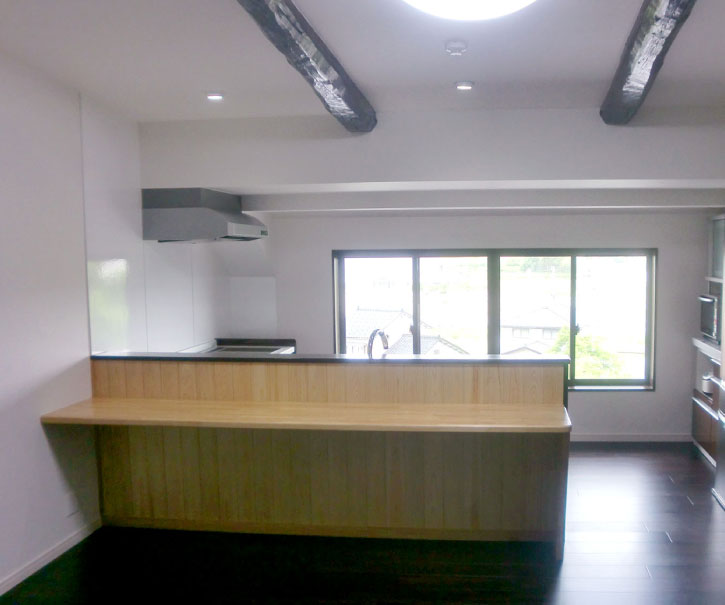 高台に建つ昔ながらの八尾の町屋住宅の改装工事。奥様の希望により、眺めの良い窓際にキッチンを配置しました。
