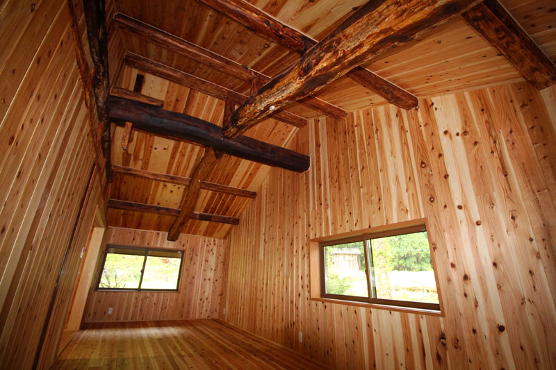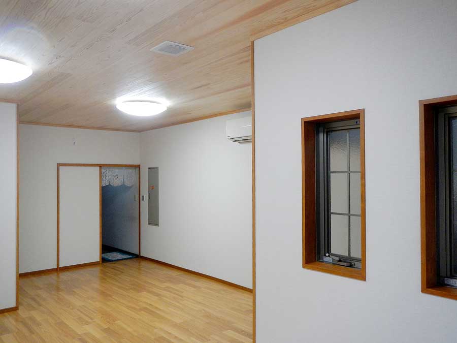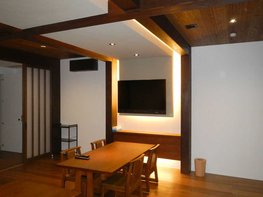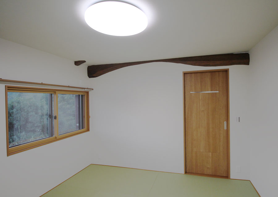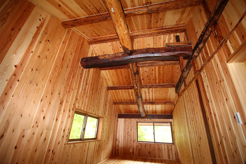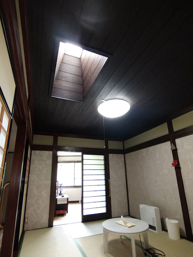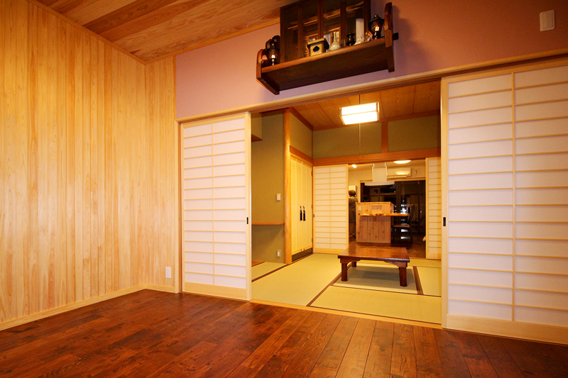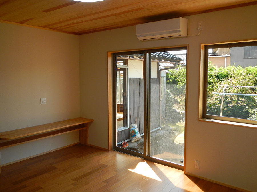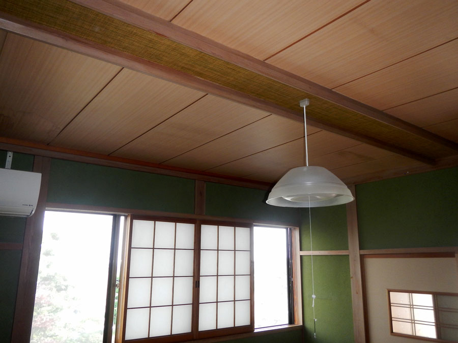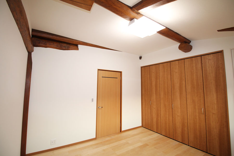 二部屋を改装しました。立派な梁がある住宅で、その梁を見せて天井の高い部屋にしたいとの希望でした。