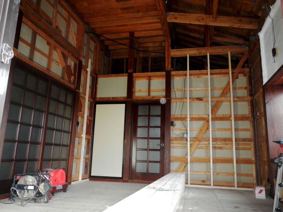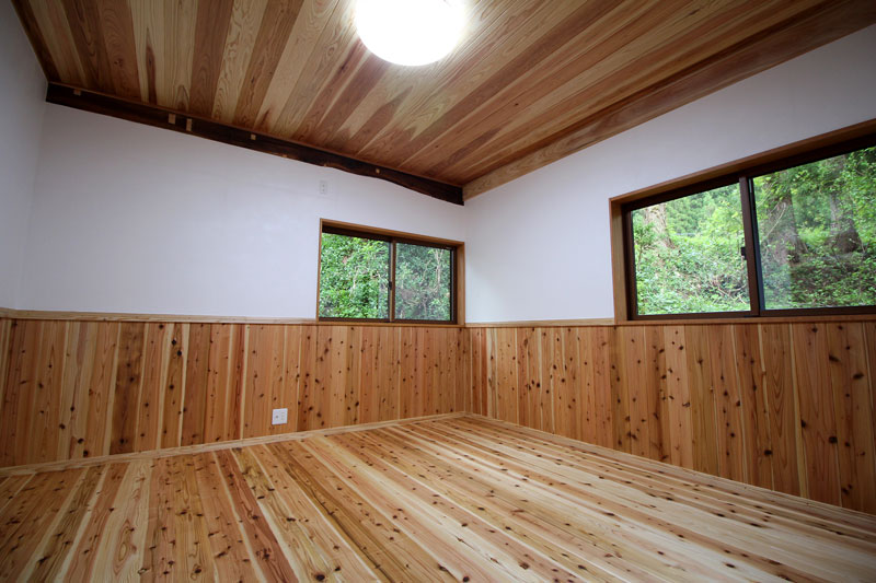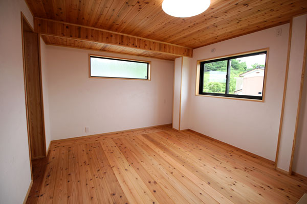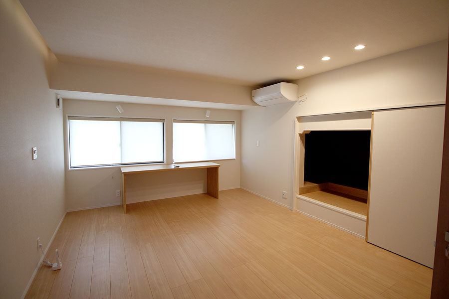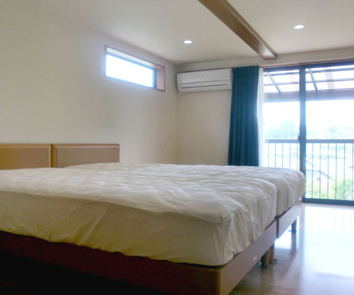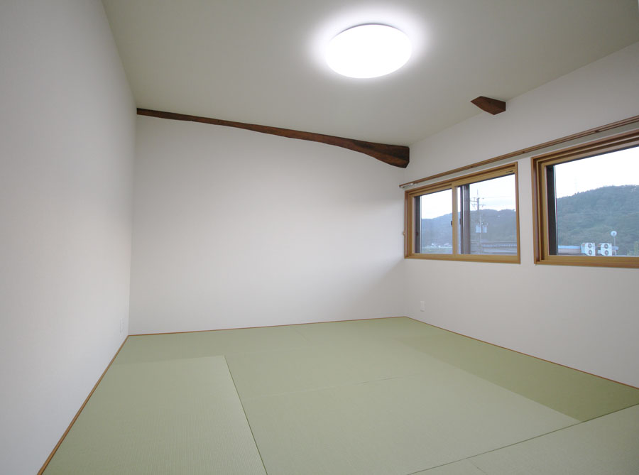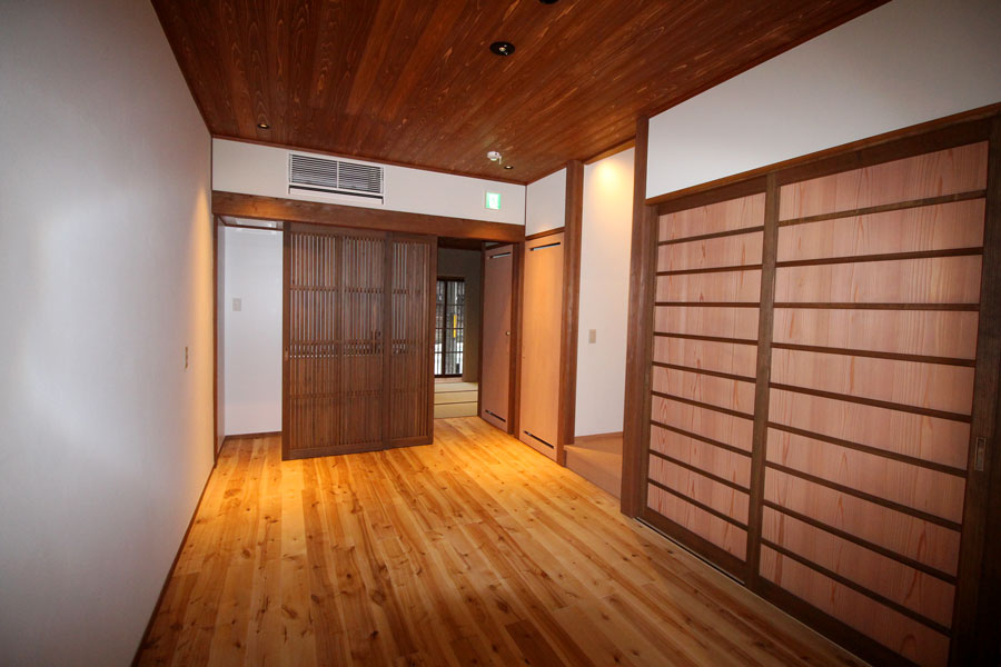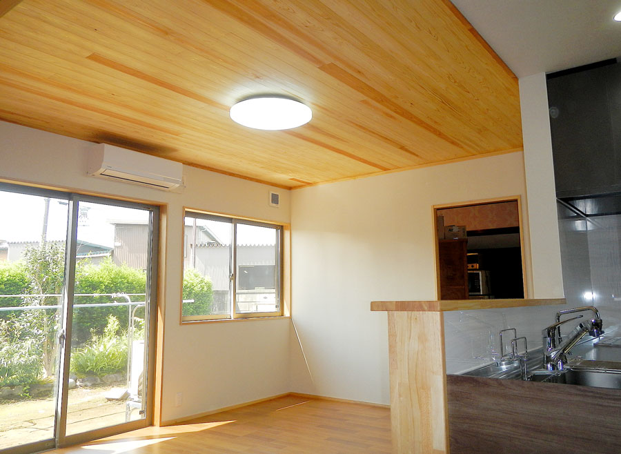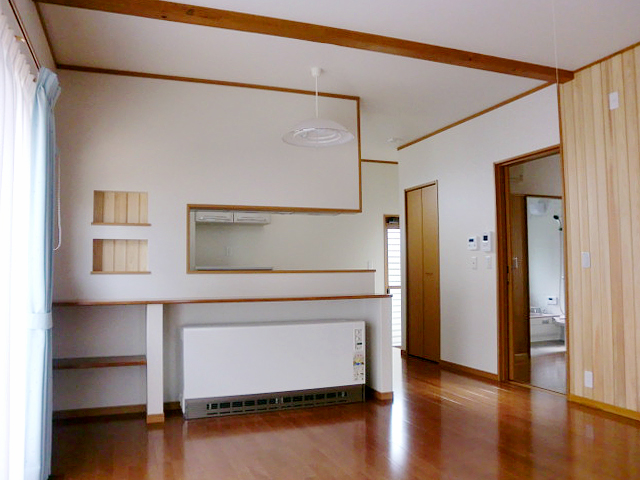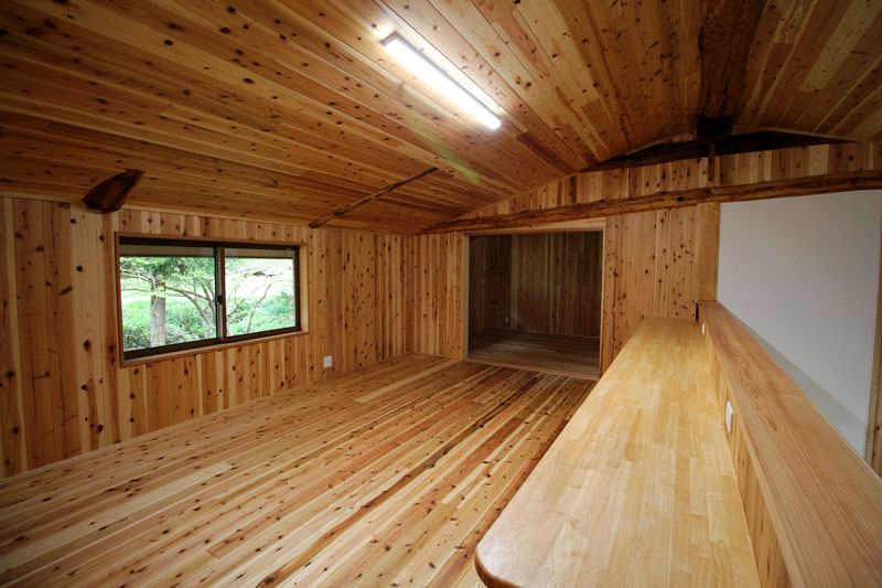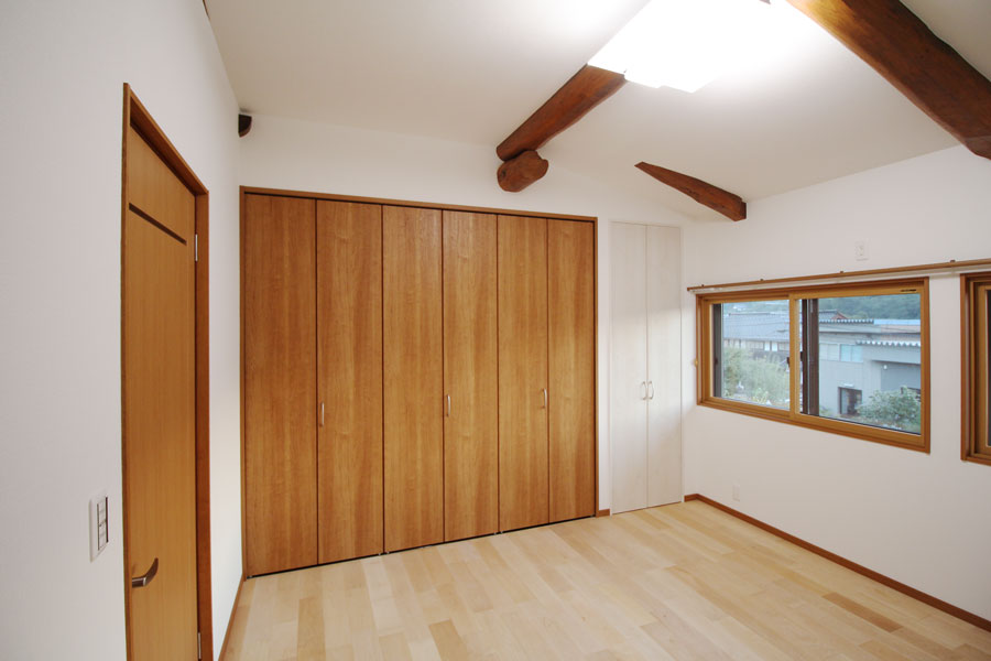 二部屋を改装しました。立派な梁がある住宅で、その梁を見せて天井の高い部屋にしたいとの希望でした。