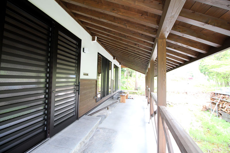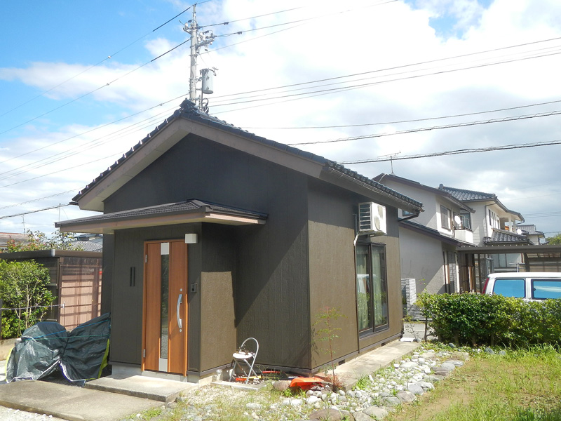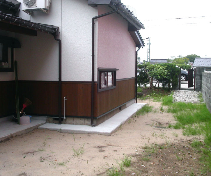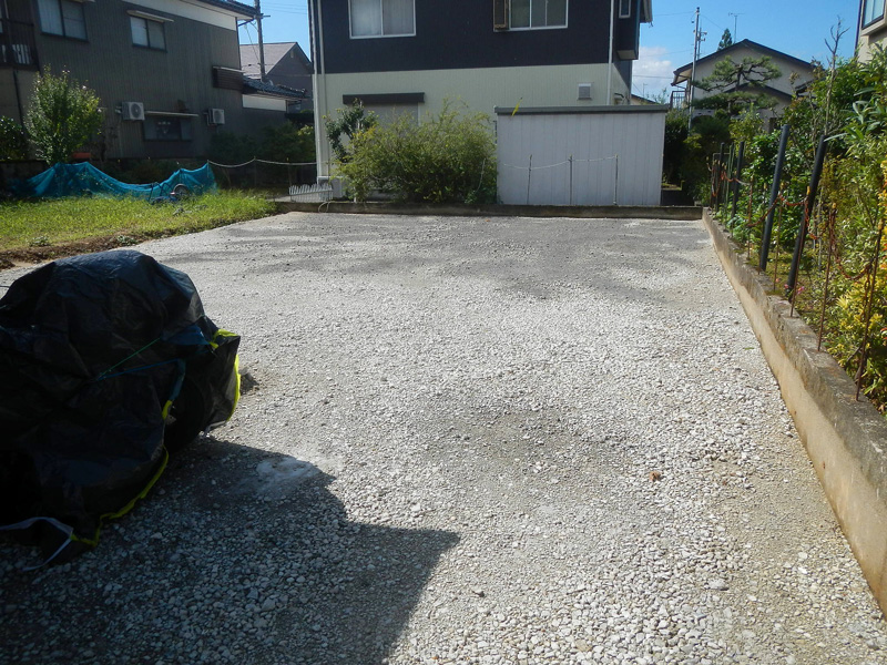 外壁等のリフォームのほか、駐車場を広くしたいという要望があったので、裏手にあった木や石等を取り除き砕石をひいて、広いスペースをつくりました。