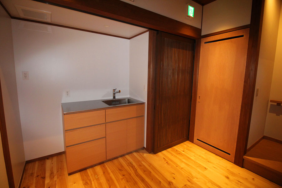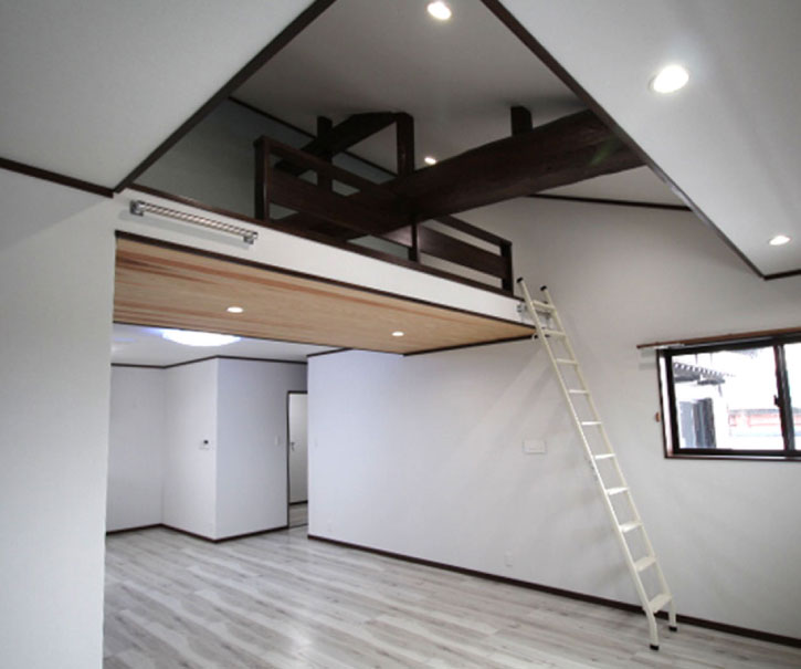 木造二階建て。二階を二世帯住宅として改装しました。10帖二間を広々とした一間として、LDKに改装、ロフトを造り、二階という限られた空間を有意義に活用しています。