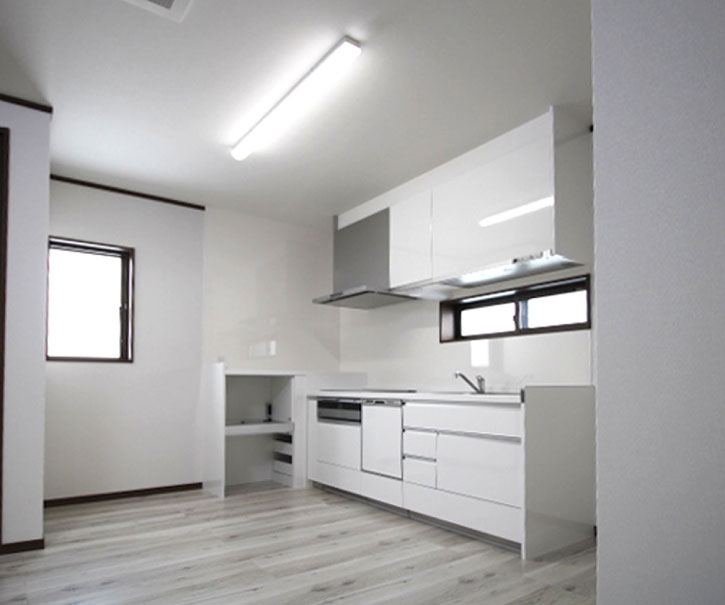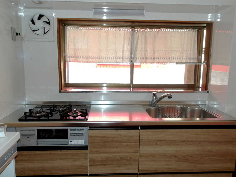 老朽化の為、システムキッチンに入替えました。隣の部屋との段差も解消し、明るく過ごしやすい空間になりました。
