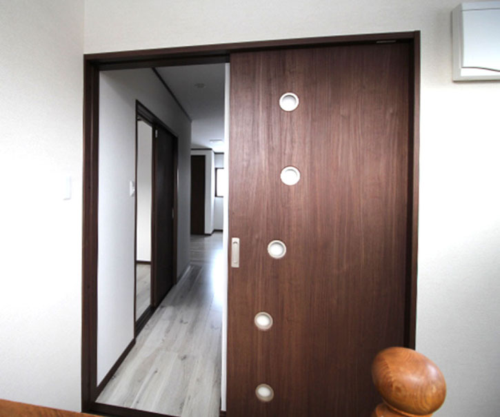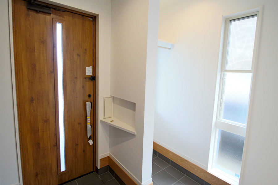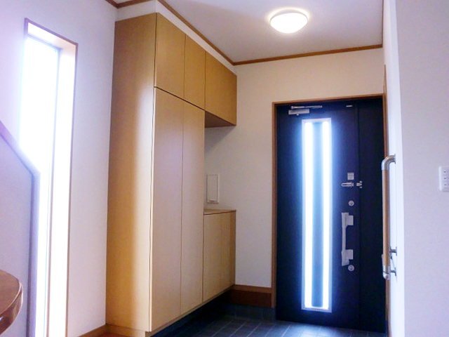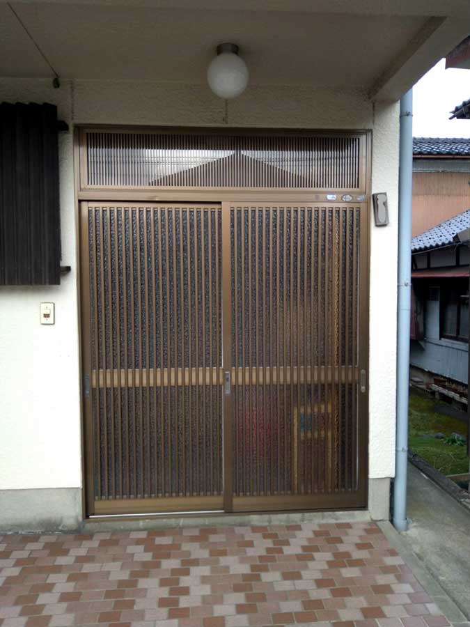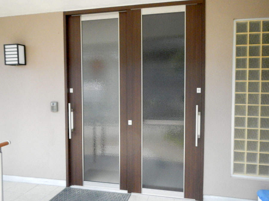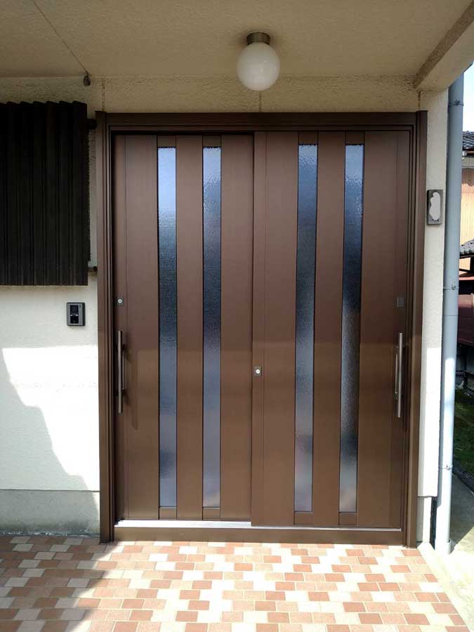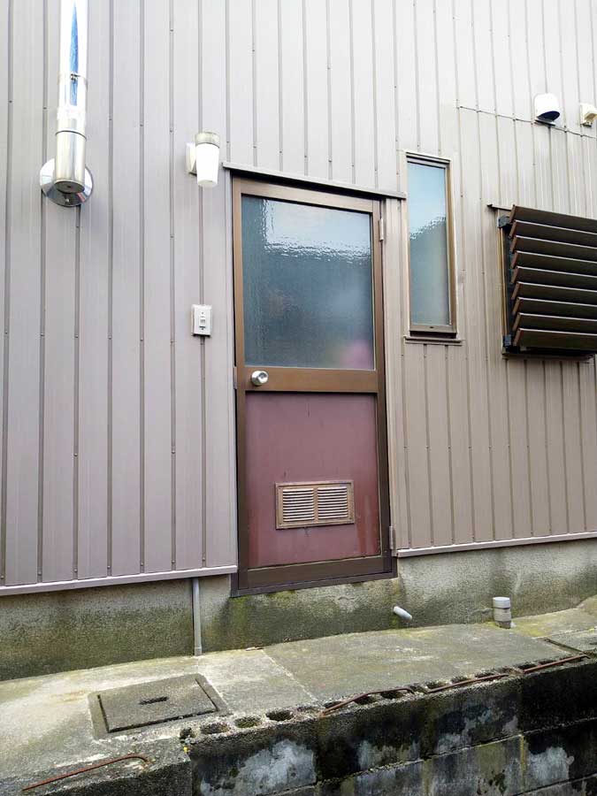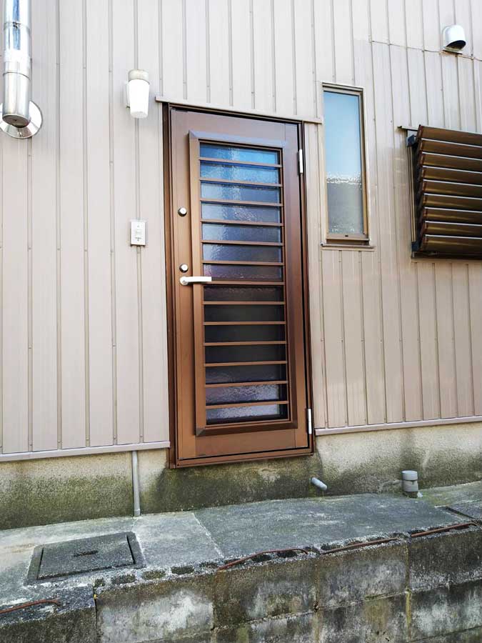 玄関戸と勝手口ドアを取り替えました。 カバー工法で行うことで、壁などを壊すことなく新しいものに替えることができ、気密もよくなります。
