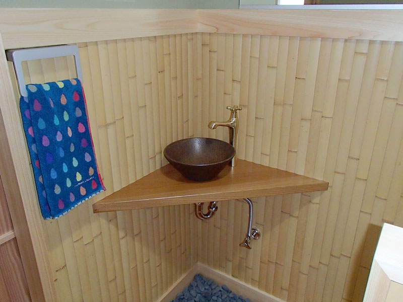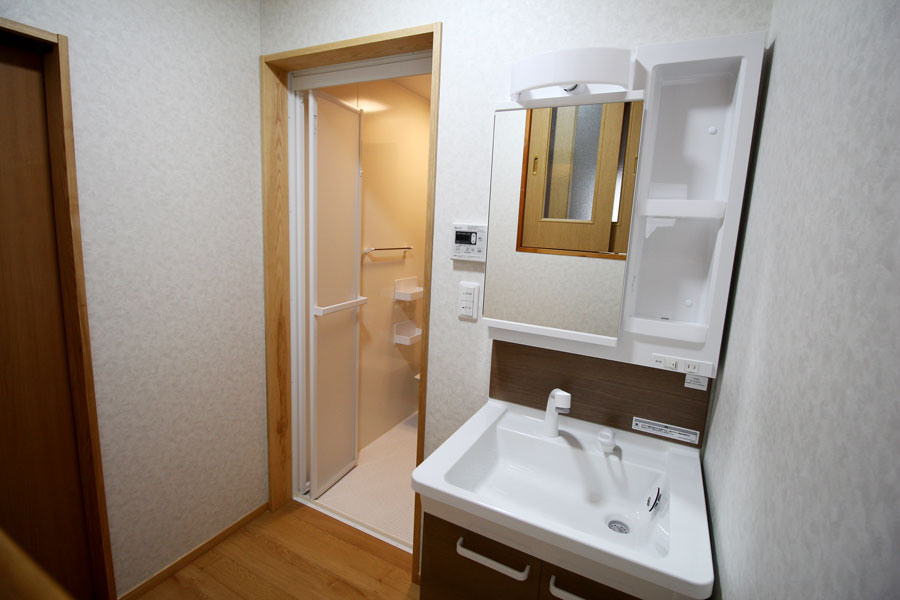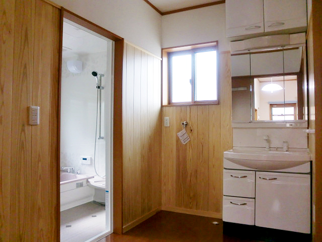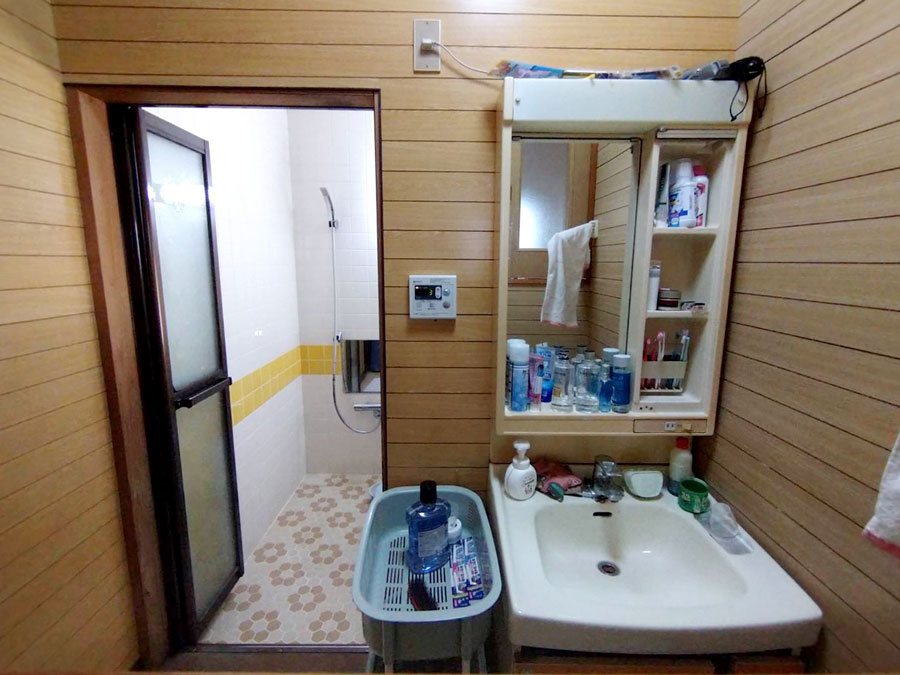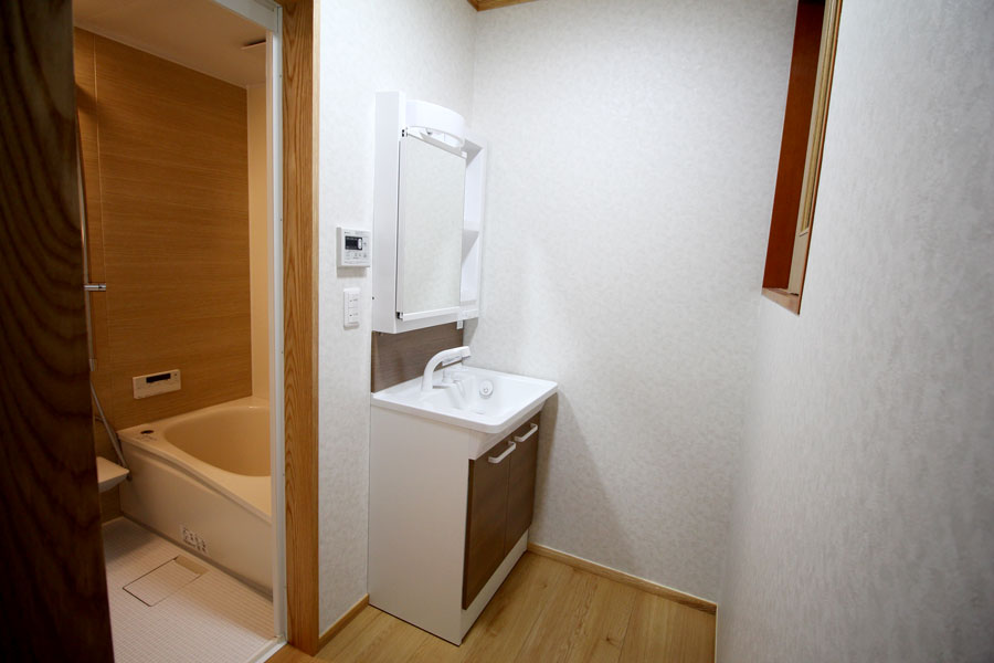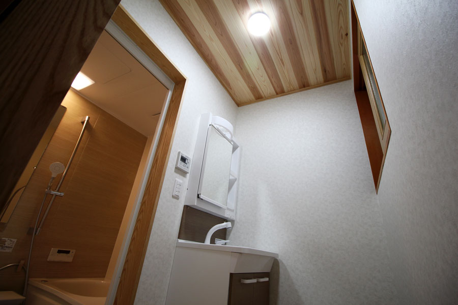 40年ほど経過した0.75坪タイル張りの浴室をユニットバスに替えました。 解体で分かったことですが、古い鉄の配管の腐食で水漏れしていました。 このまま放っておくと大変なことになっていました。 脱衣室の床も傷んでいたので土台からやり直し、天井には杉の板を張り、温かみのある空間になりました。