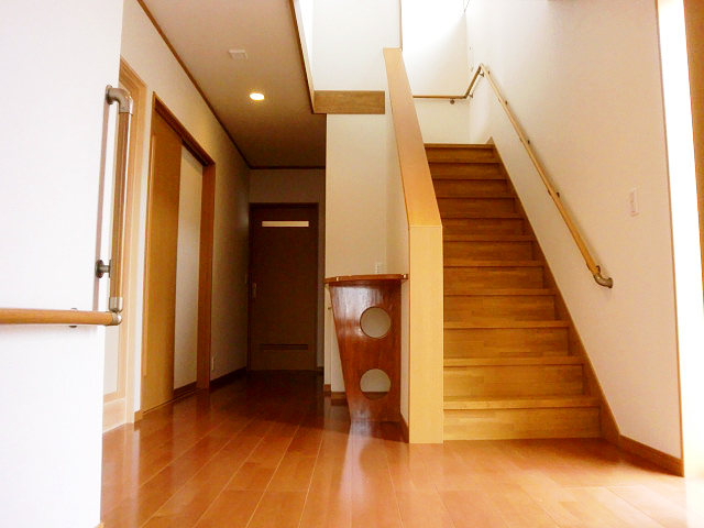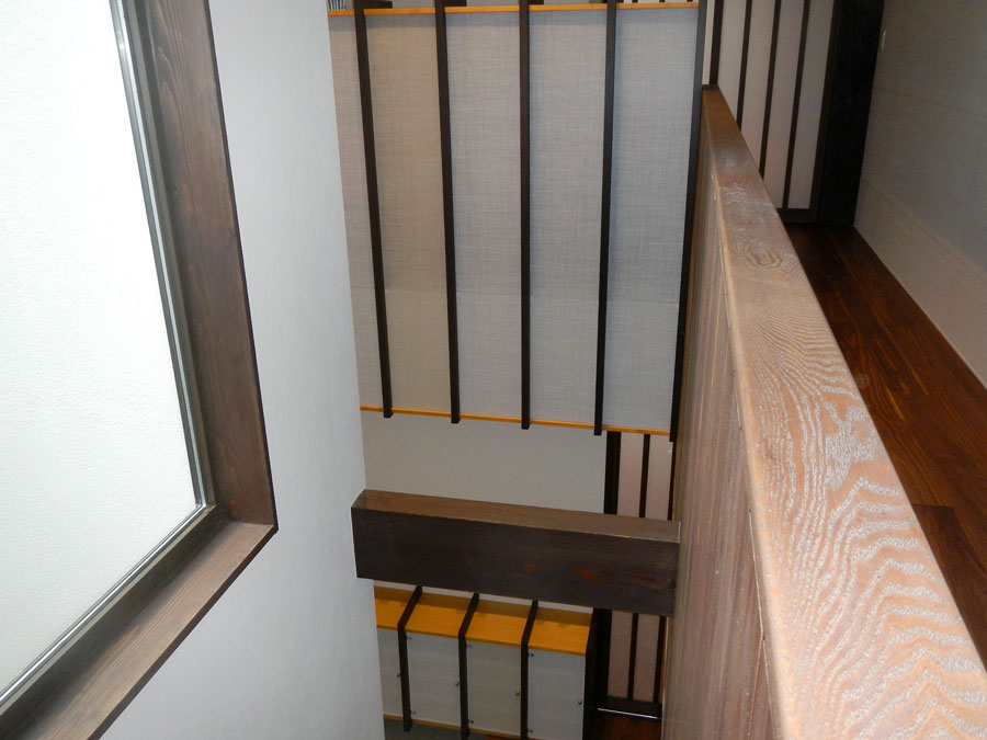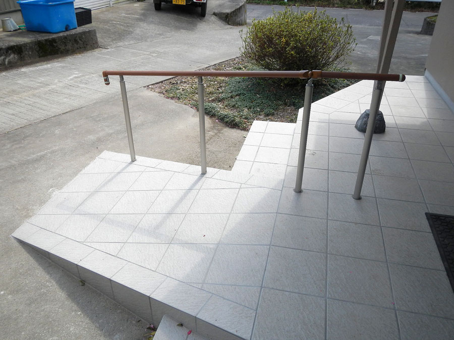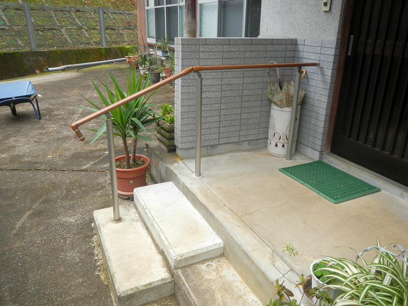 足腰が弱くなったお母様のために、手摺を取り付けてほしいとの要望があり、手摺の取付と、元ある階段に段を足して段差を小さくして上りやすくしました。