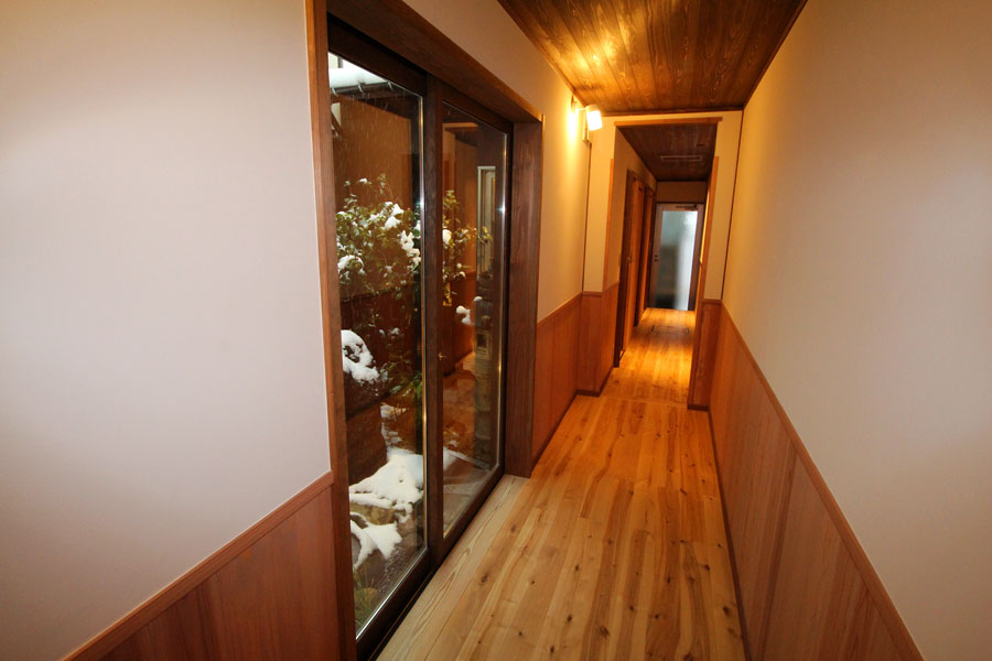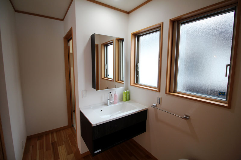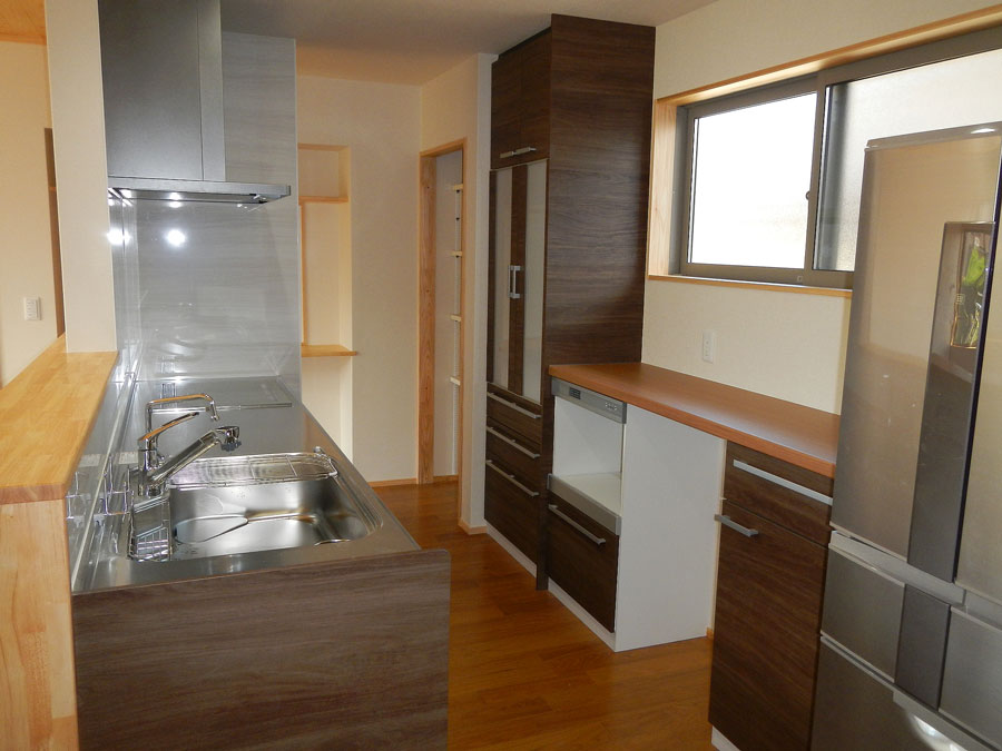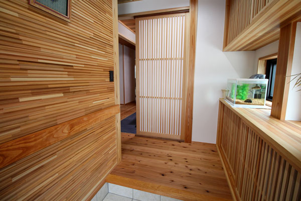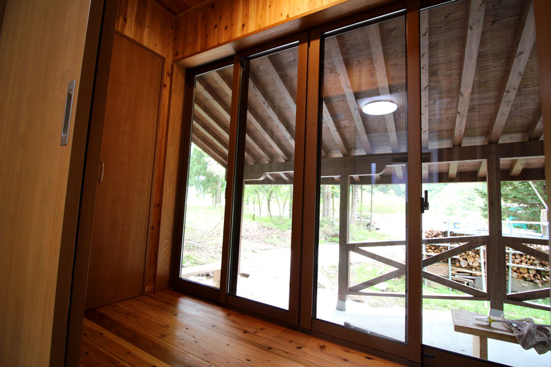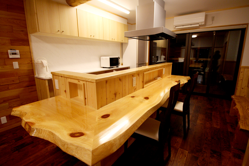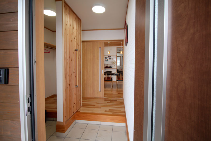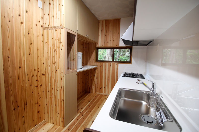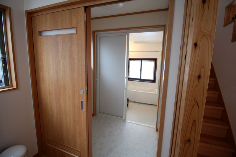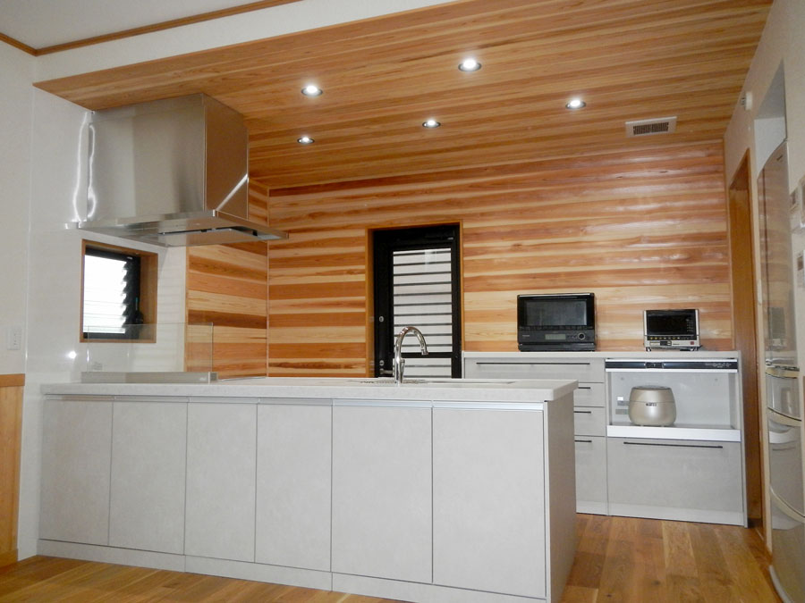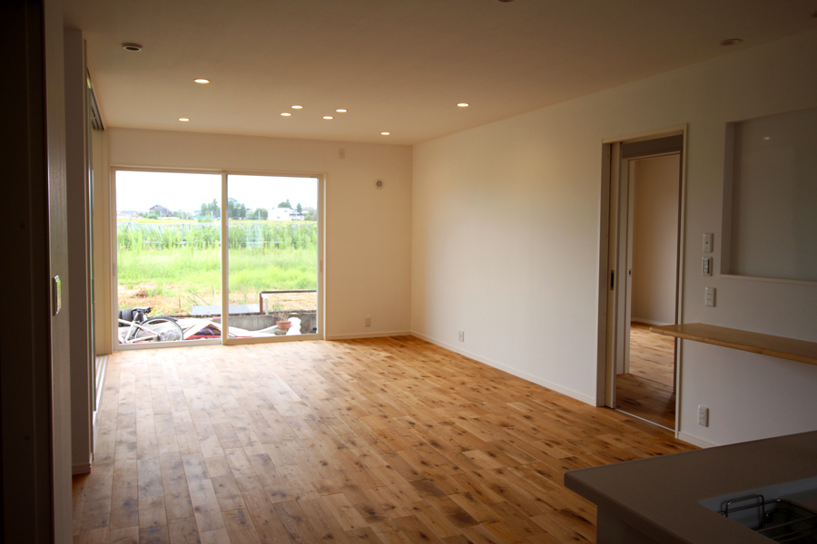 夫婦二人、農作業のしやすさを考えて、広い土間スペースをつくり、農作業の汚れを住居部分に持ち込まないように土間にトイレやバスルームをつくりました。 木をふんだんに使い、温かみのある空間に仕上げました。