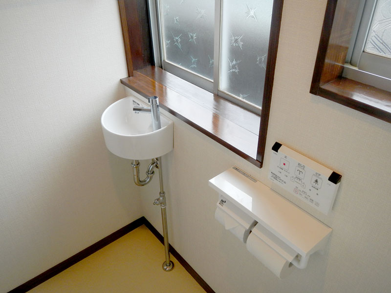 1.5帖ほどに小便器と和式便器があり狭かったところ、洋式一つだけにした為、広々とした印象になりました。