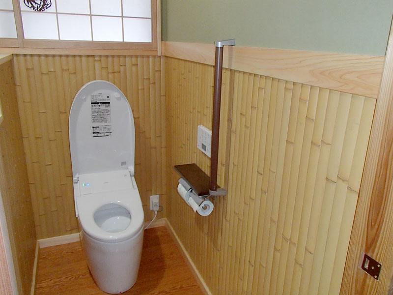 前住んでいた住宅にあった素敵な組子を使いたいとの希望で、トイレの障子戸に組み込み、新たに生まれ変わり、格式高い和風のトイレになりました。