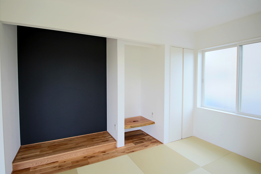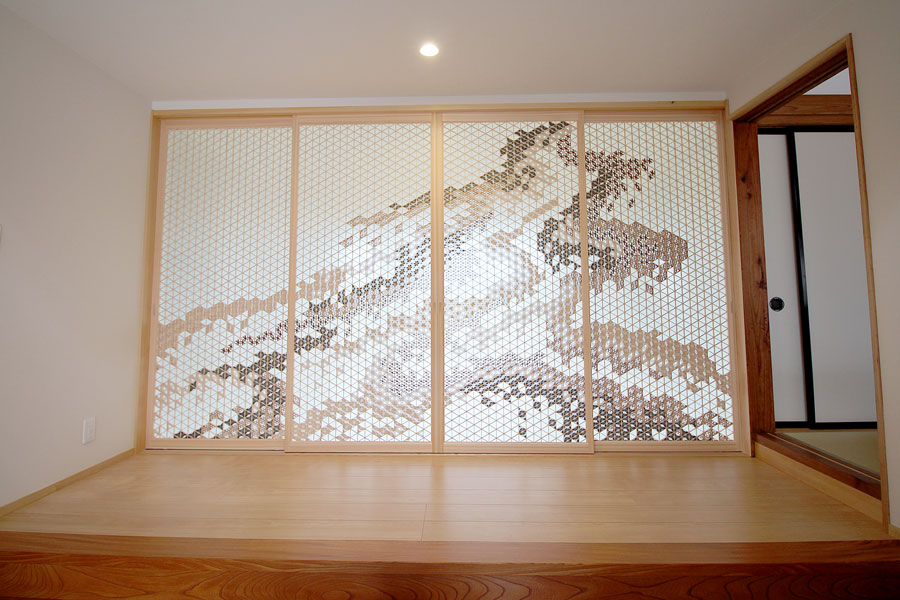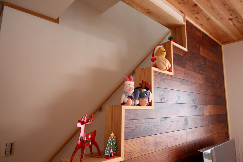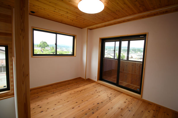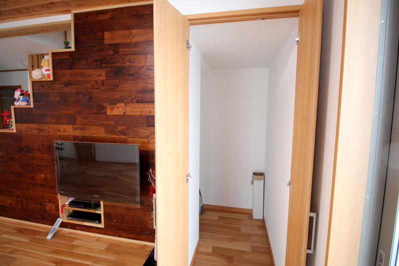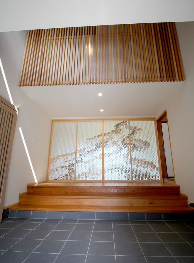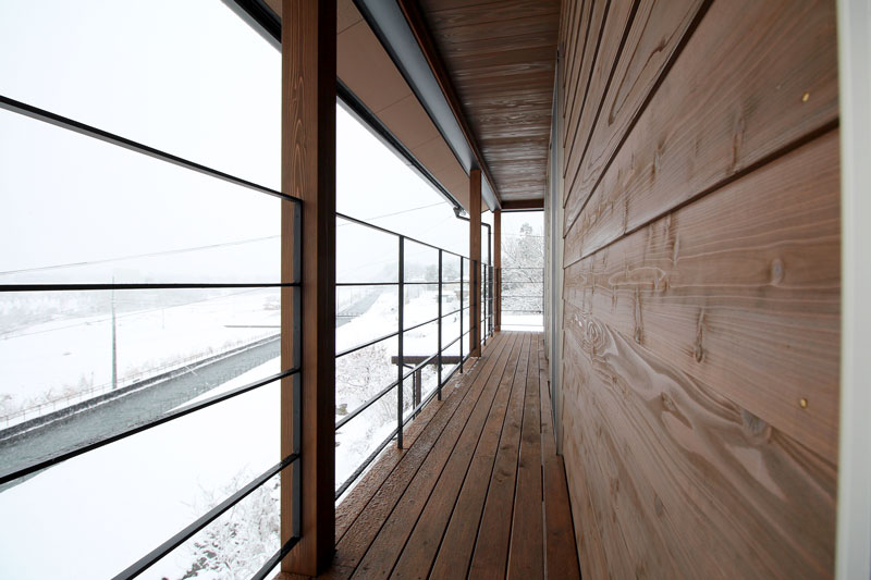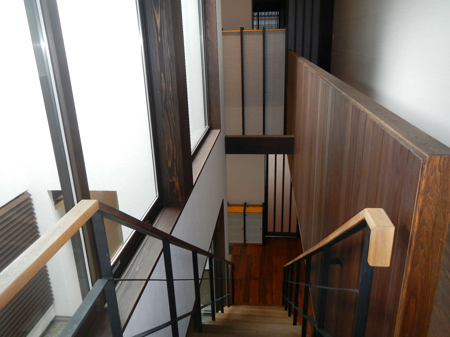 立山が一望できる東側にリビング、そしてお風呂に入りながらその素敵な景色を眺めたいとの希望で、部屋を配置しました。 猫を飼っていらっしゃるので、猫が遊べるように階段の手すりを階段風にし、和室の天井は木の色を生かし、モダンな感じに仕上げました。
