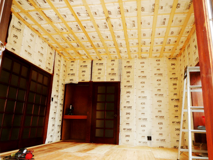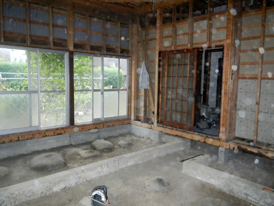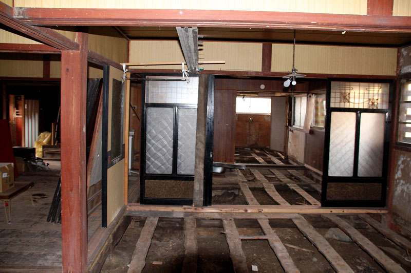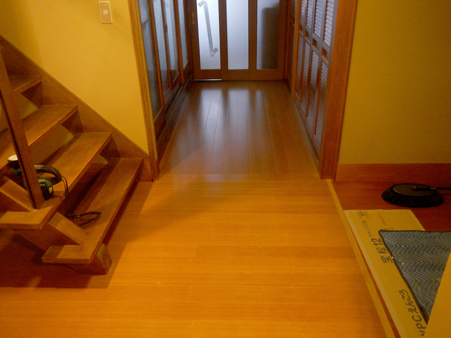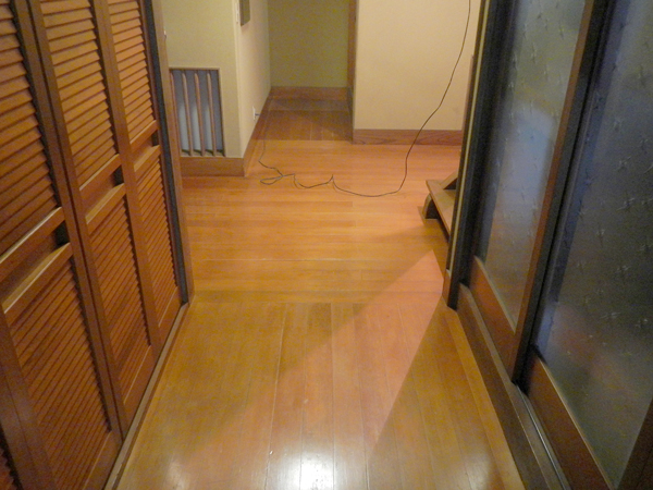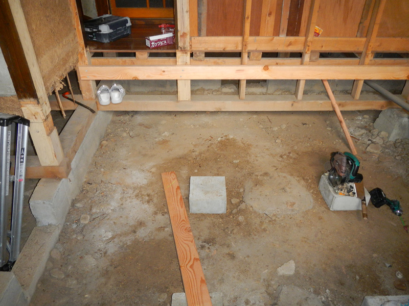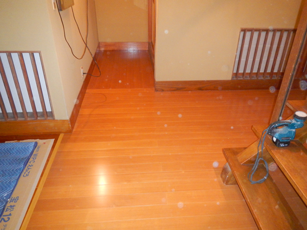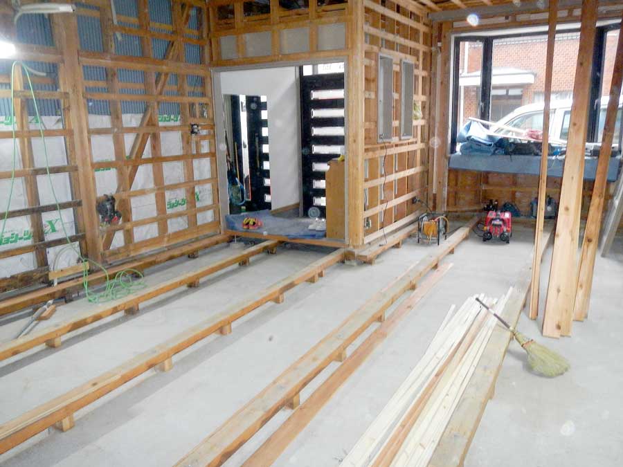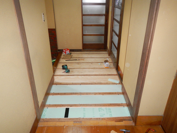 床をまくって束を補強し、断熱材を入れ、新しいフローリングに替えました。