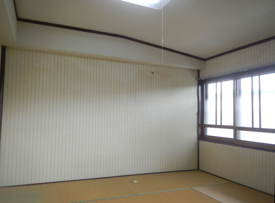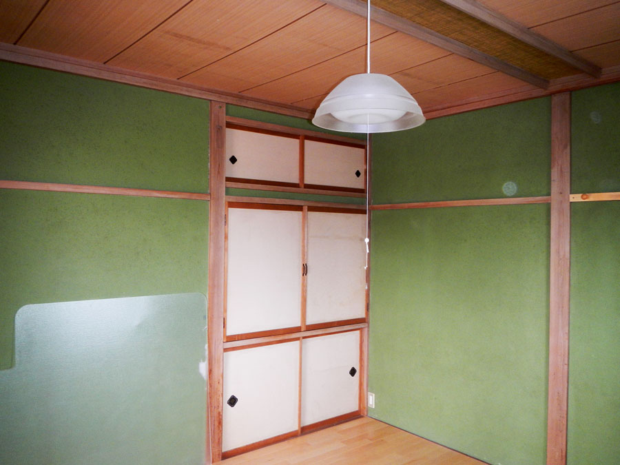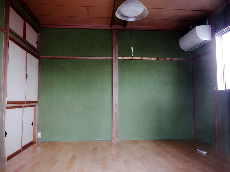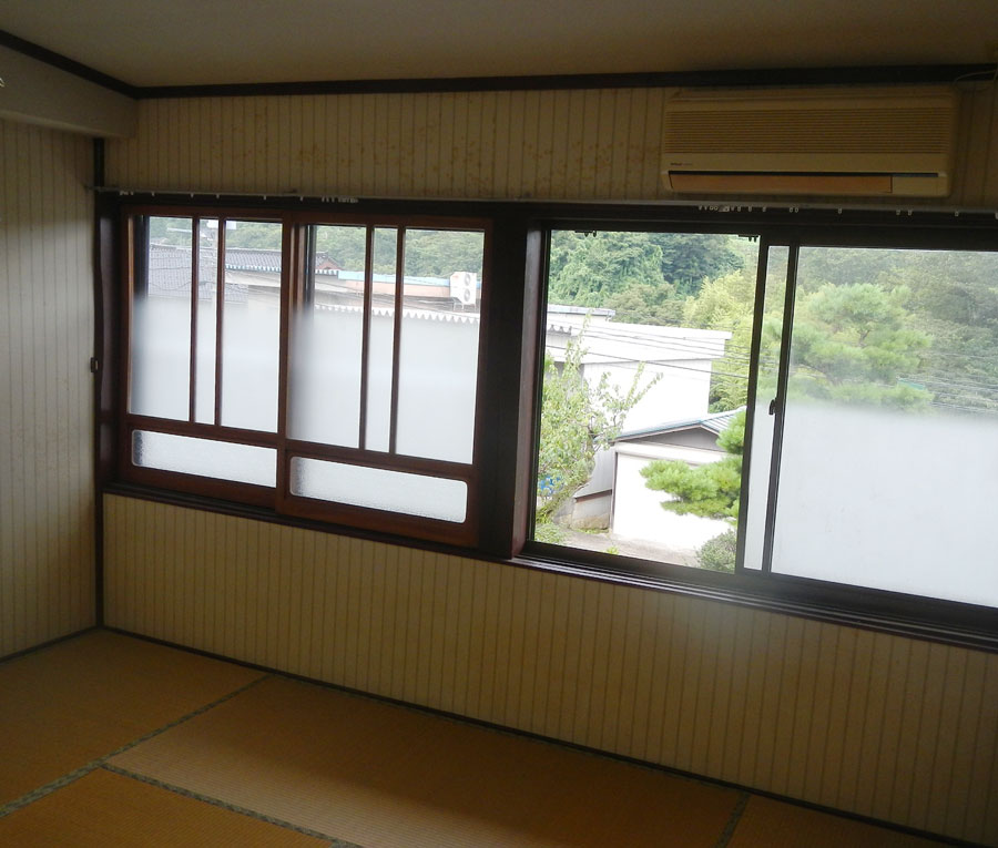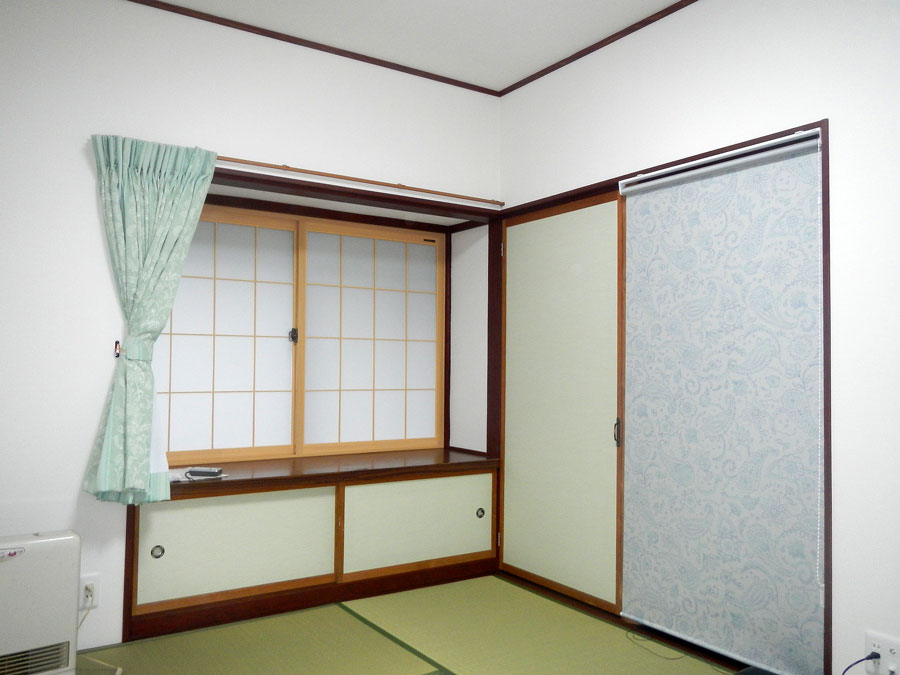 和室を夫婦の寝室として使うために改装しました。塗り壁で触れるとボロボロ壁が落ちるため、物を置いたり、扱いが大変でした。 壁をクロスにし、和風の内窓を入れ防寒対策もしました。