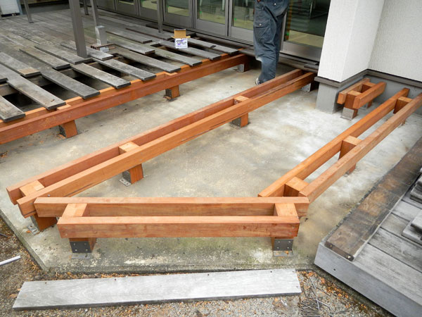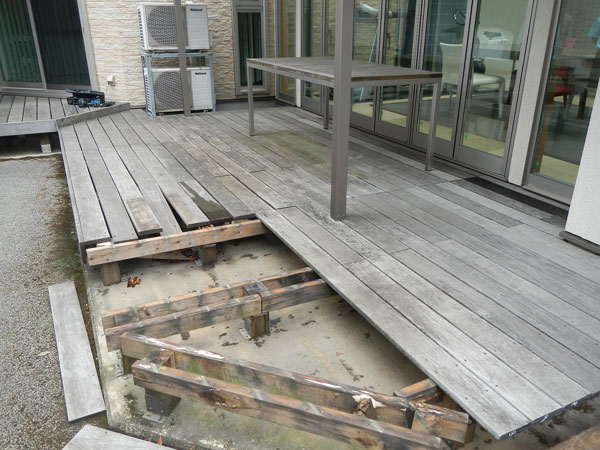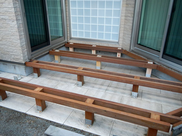 ウッドデッキ土台の木が傷んでいたので、取り替えました。