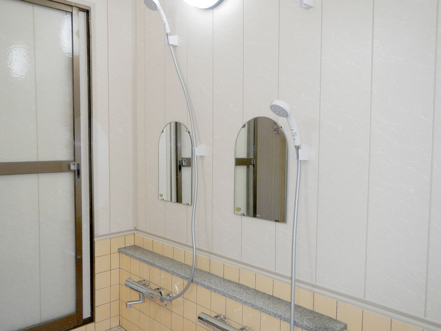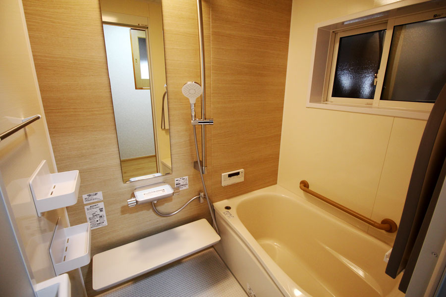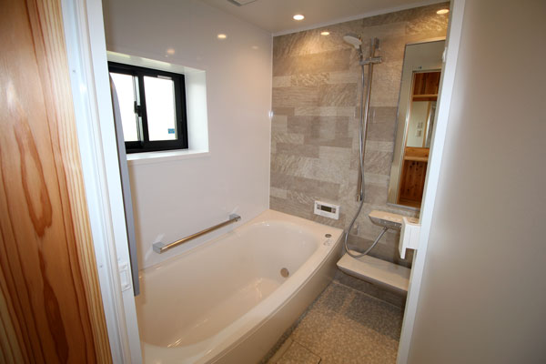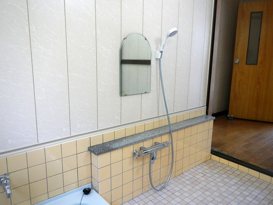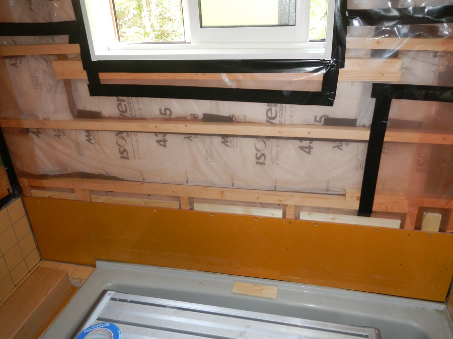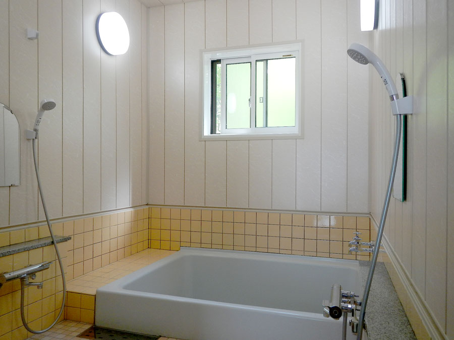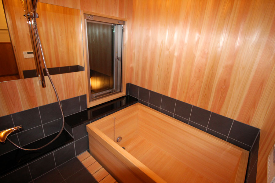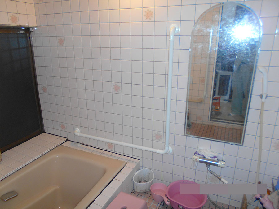 老朽化の為改装しました。モルタル仕上の風呂でしたが、性能の良い断熱材に入れ替え、タイルを貼るなどして、温かみのある風呂に生まれ変わりました。