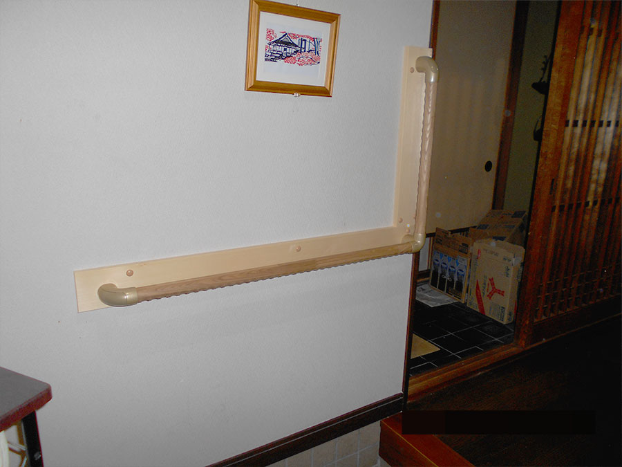 介護の補助金を使われて、手摺を取り付けました。 安心して動けると、喜んでいただけました。